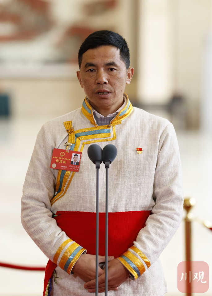“我是一名土生土长的摩梭人,大家都习惯性地叫我‘扎石代表’。今天,我想用三个‘扎实’向大家讲述我的履职故事。”2月3日,在四川省十四届人大五次会议首场“代表通道”上,省人大代表、盐源县泸沽湖镇舍垮村党总支书记李比玛扎石身着白色民族服饰,以一段巧妙的“谐音梗”开启了他的发言。