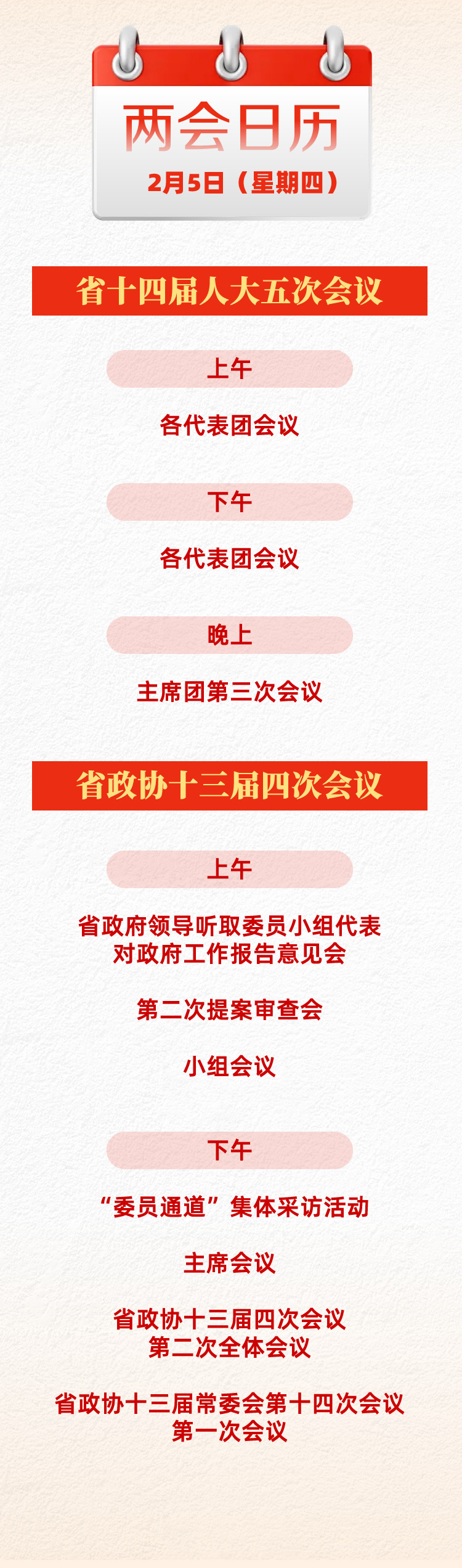 两会日历丨省政协十三届四次会议举行第二次全体会议(2月5日)